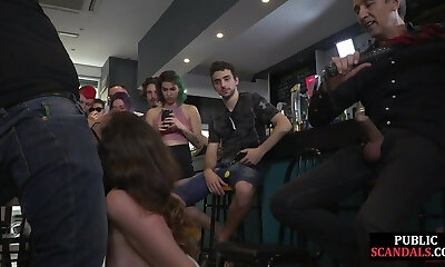 Useless busty big boobed slut public fellating and whipping