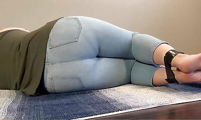 Tied up Doll Can't Hold it Anymore Urinates in Light Jeans