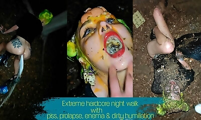 Extraordinary hardcore night walk with piss, enema, prolapse and dirty humiliation