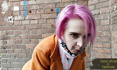 Emo superslut dominated, pissed on, slapped and sucking cock